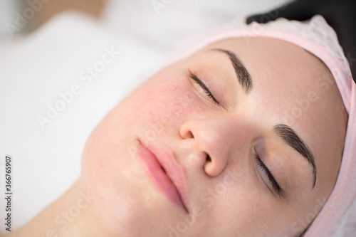 Close-up of cosmetologist makes the Rejuvenating facial injections procedure for tightening on the face skin of woman in a beauty clinic. Biorevitalization procedure