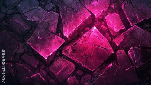 Close-up of cracked and broken dark red crystal, night sky background, close-up, warm light from behind the crystals