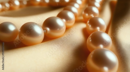 Close-up of delicate lustrous pearls on elegant fabric, soft lighting highlighting unique light reflections.