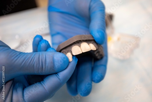 close-up of dentist hand with dental tools