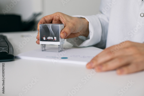 caucasian, one person, desk, working, stamp, part of, occupation, prescription, indoor, health care, bureaucracy, medical practice, office, stamping, selective focus, prescription drug, hand, administration, closeup, hospital, spain, people, adult, woman, table, job, workplace, doctor, pharmaceutic, photo, color image