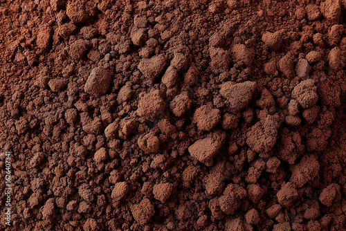 Close-up of earthy cocoa powder, showcasing its rich texture and color. The rough surface hints at the fine powder's origins