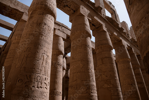 Close-up of Egyptian Hieroglyphs on columns, Karnak Temple Complex, Luxor, Egypt