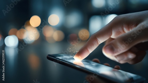 closeup, finger, scrolling, mobile, phone, blurred, background