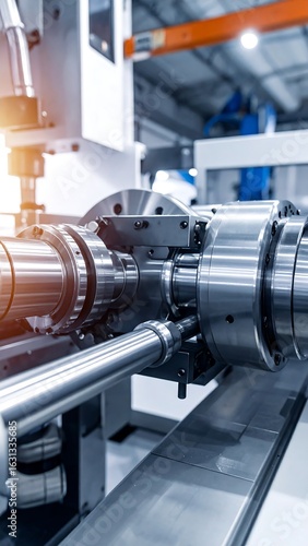 Close-up of gleaming metallic industrial machinery components, intricate design, precise engineering