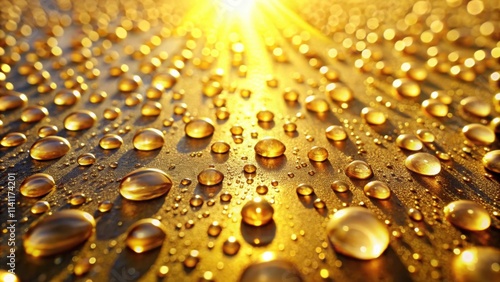 Close-up of golden droplets reflecting sunlight on a clear sunny day, sunlight, golden, droplets, water, reflection, sunny day