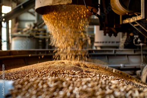 grain, agriculture, technology, farming, mechanism, efficiency, productivity, closeup, modern, machinery, crop, harvest, storage, farm, production, process, equipment, loading, conveyer, seed, transport, industry, agribusiness, rural, grain, industrial, logistic, infrastructure, conveyer belt