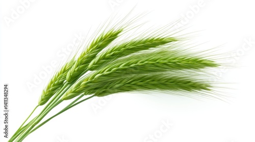 Closeup of green wheat stalks isolated on white background study of natural abundance and agricultural bounty