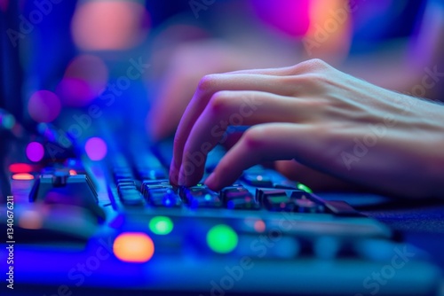 gaming, keyboard, typing, hand, colourful, light, indoor, night, technology, activity, computer, concentration, excitement, performance, electronic, digital, tactile, play, entertainment, interaction, sharpened, illumination, workspace, gamer, speed, community, competition, event, lifestyle, modern, creativity, online, youth, skill, fun, immersion, session, rythm, connection, ambience