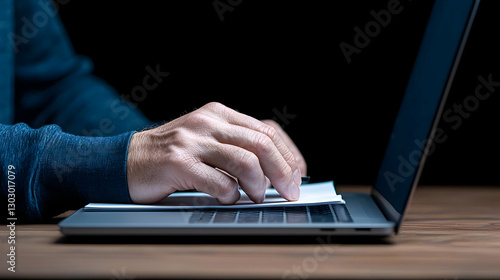 laptop, hand, typing, keyboard, workspace, technology, desk, person, casual attire, communication, modern, closeup, writing, office, computer, wooden, paperwork, finger, business, digital, device, home, isolation, creativity, study, remote, connect, minimalist, productivity, sharpened, night, equipment, information, reading, lifestyle, organisation, task, screen, print, shadow, online, leisure, detail, environment, interaction, creative