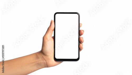 Closeup of Hands Using Smartphone Mockup on Office Desk with Laptop and Workspace