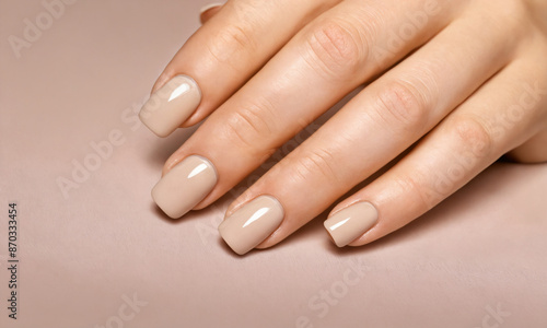 Closeup of hands with nude nail polish