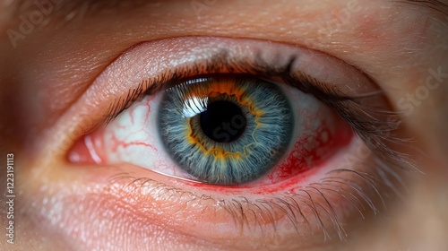 Close-up of human eye. Human eye with red pupil