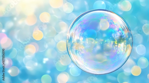 Close-up of iridescent soap bubbles with delicate reflections, creating a dreamy texture and vivid colors, perfect for abstract presentations and creative concepts