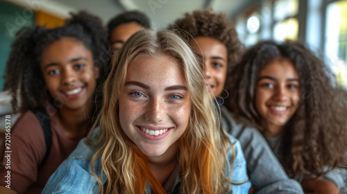 happy, young, female, student, classroom, closeup, smiling, laughter, education, technology, smartphone, portrait, youthful, girl, college, university, fun, friendship, togetherness, capture, photo, learning, study, cheerful, positive, modern, teenage, casual attire, urban, happiness, joyful, diverse, multicultural, group, academic, horizontal