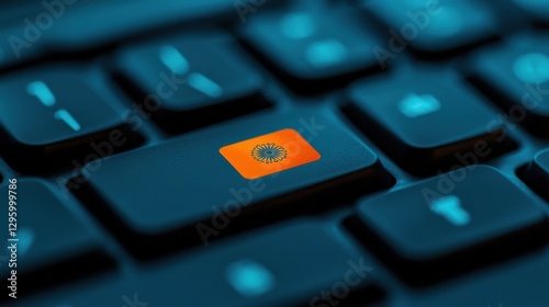 Close-up of Keyboard Key with Orange Symbol on Dark Surface