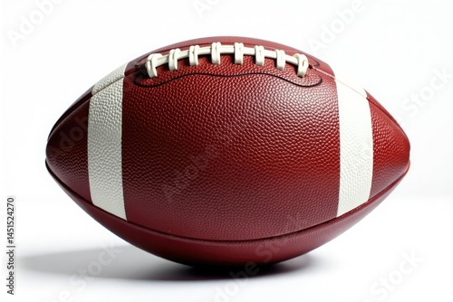 Close-up of leather football, pristine white background, athletic, white, design