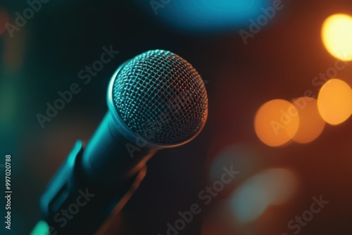 microphone, stage, music, performance, sound, audio, singer, concert, entertainment, equipment, technology, recording, vocal, art, event, background, blur, light, night, atmosphere, acoustic, instrument, artistry, expression, show, melody, vibe, nightlife, excitement, intimacy, speaker, heritage, design, modern, creative, colours, closeup, detail, sharpened, scene, studio, professional, style, rythm, culture, mood