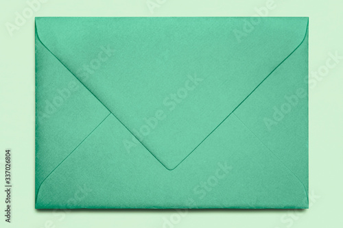 Close-up of old green envelope , texture background
