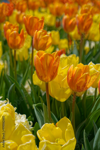 orange, yellow, tulip, flower, nature, garden, spring, season, plant, beautiful, bloom, blossom, colourful, flora, field, floral, natural, springtime, background, beauty, summer, vibrant, fresh, botany, seasonal, blooming, gardening, blossoming, closeup, park, bud, holland, tulip, romance, day, high-coloured, landscape, botanical, bright, colours, green, dutch, festival, michigan, closeup