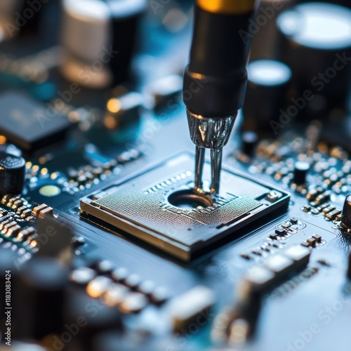 technology, electronic, repair, circuit, board, computer, central processing unit, processor, microchip, chips, installation, component, hardware, digital, engineering, science, innovation, industry, manufacturing, maintenance, precision, detail, closeup, macro, tool, equipment, assembly, intricate, connection, system, development, datum, network, processing, upgrade, fixing, solder, soldering, micro, circuitry, integrated, electric, signal, wire, pin, contact, metallic
