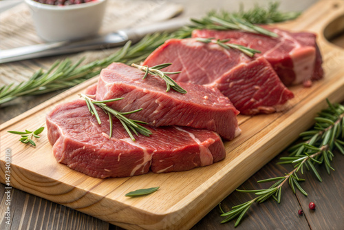 raw, red, meat, fresh, herb, wooden, board, prepared, cooking, texture, freshness, ingredient, food, culinary, kitchen, protein, meal, preparation, savoury, epicure, cookery, receipe, homemade, natural, organic, stock, image, photo, appetising, delicious, butcher, cut, quality, premium, healthy, diet, nourishment, rustic, hearty, wholesome, flavorful, sensory, taste, visual, appealing
