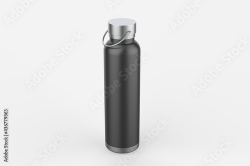 Close-up of reusable, steel thermos water bottle, isolated on white background. Say no to plastic disposable bottle. 3d illustration
