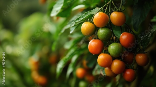 cherry, tomatoes, vine, red, green, orange, yellow, ripe, unripe, fruit, plant, garden, vegetable, leaf, tree branch, stem, nature, macro, juicy, fresh, organic, agriculture, harvest, summer, food, healthy, vitamin, delicious, sweet, salad, sauce, cooking, vibrant, colourful, glossy, wet, dew, droplet, background, blurred, bokeh