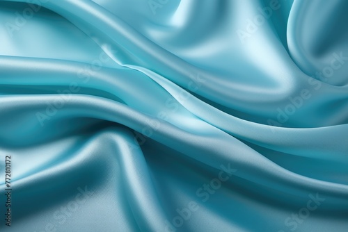 Closeup of rippled one blue color silk fabric Whole background Abstract background, AI generated