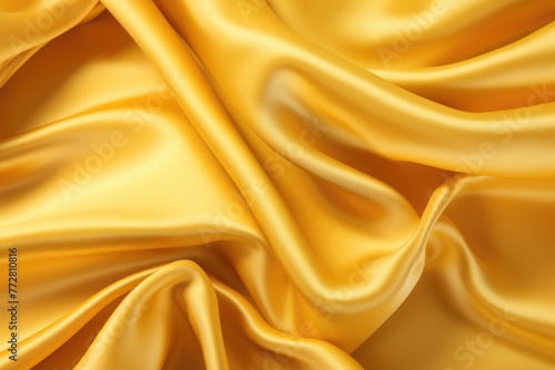 Closeup of rippled one yellow color silk fabric Whole background Abstract background, AI generated