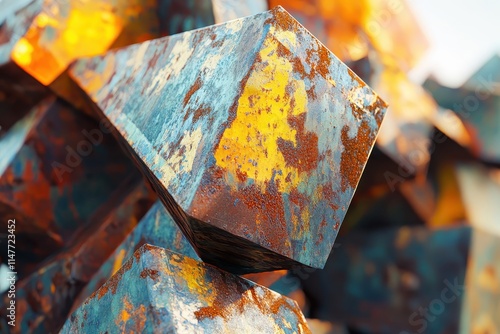 rust, metal, texture, cube, orange, blue, brown, grunge, industrial, background, abstract, pattern, block, geometric, weathered, aged, vintage, corroded, oxidized, steel, iron, gold, yellow, decay, surface, detail, material, construction, architecture, art, three-dimensional, rendering, digital, photo, stock, photo, element, graphic, illustration, vibrant, colours, contrast, shadow, light, reflections, shape, composition