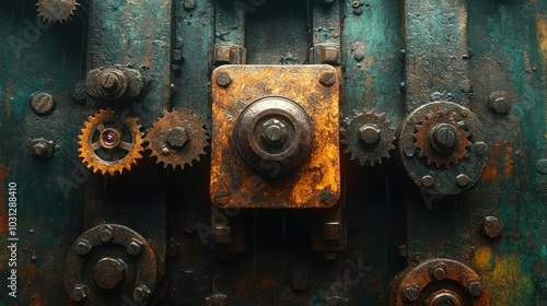 machinery, gear, rust, metal, industrial, mechanism, technology, vintage, engineering, hardware, surface, texture, design, retro, tool, equipment, assembly, part, rotation, craftsmanship, detail, age, system, worked, connection, dynamic, metalwork, innovation, structure, fabrication, process, movement, maintenance, repair, artistry, complexity, precision, mechanic, restoration