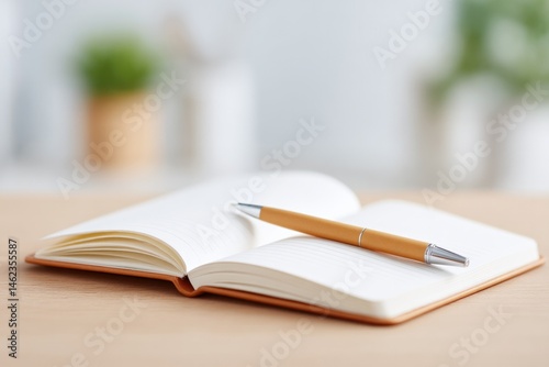 closeup, serene, work, desk, minimalist, open, notebook, pen, career, coaching, inspiration, simplicity, sharpened, surrounding, area, uncluttered, enhance, calmness, ample, copy space, text, neutral, tone, create, clean, image, professionalism, clarity, development, theme, scene, high-quality, empty space, colours