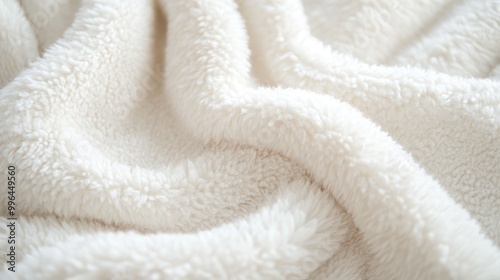 Close-up of soft, white plush fabric texture, creating a cozy and luxurious background ideal for various uses.