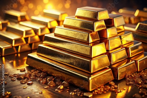 Close-Up of Stacked Gold Bars: Fine Gold Bullion, Luxurious Wealth Concept