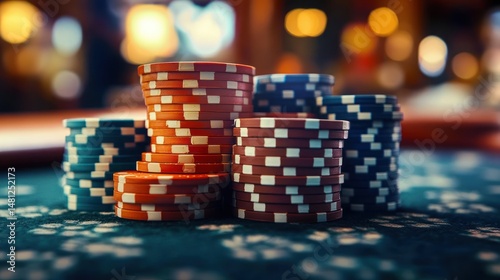 poker chips, casino, gambling, closeup, table, game, betting, chance, risk, playing, sharpened, colourful, entertainment, competition, luck, glow, nightlife, money, stake, winning, casino game, gaming, strategy, indoor, leisure, casual attire, amusement, recreation, luxury, blurred background, activity, challenge