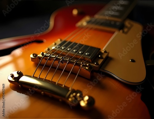 Close-Up of Sunburst Semi-Hollow Guitar in Warm Lighting