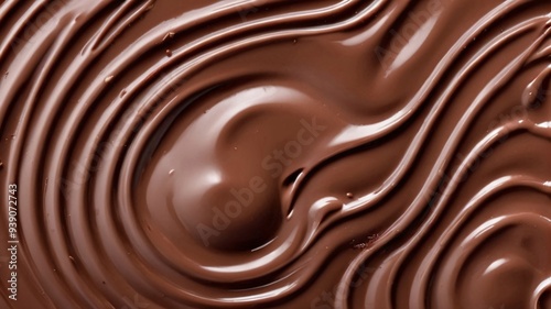 Close-up of swirling melted chocolate, rich and decadent.