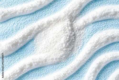 Close-up of Textured White Sand Creating Wavy Patterns Against a Soft Blue Background for Creative Design Use