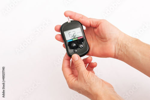 glucose, meter, blood, sugar, diabetes, check, health care, hand, device, exam, disease, diabetic, analysing, examining, female, check-up, normal, treatment, hyperglycemia, medicine, finger, result, isolated, background, white, level, closeup, woman, measure, health, insulin, equipment, instrument, display, measurement, control, technology, human, number, object, medicals, person, digital, test, closeup, care