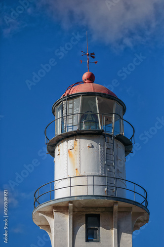 template, rust, lighthouse, tower, light, sky, building, white, control, sea, architecture, coast, blue, beacon, aerodrome, navigation, ocean, traffic, air, safety, old, house, warning, red, tall