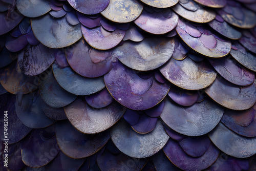 closeup, pattern, scale, purple, grey, texture, abstract, overlapping, detail, geometric, background, surface, repetition, design, structure, seamless, macro, artistic, modern, digital, wallpaper, textile, fabric, print, decorative, vibrant, colourful, simple, symmetry, elegant, unique, contemporary, stylish, art, graphic, subtile, smooth, light, shadow, complexity, layer, mosaic, fish, dragon, reptile, armoring, skin, fashion, material