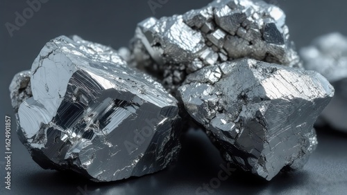 mineral, crystal, metallic, shiny, grey, silver, texture, rough, sharp, edge, facet, light, dark, background, closeup, macro, detail, geology, science, nature, rock, stone, solid, hard, opaque, surface, form, structure, pattern, three, flocked, group, specimen, sample, collection, element, compound, matter, material, substance, object, lustrous, gleam, sparkle, contrast, photo, image, visual