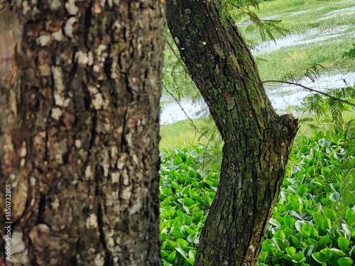 Close-Up of Tree Trunk with nature elements and Detailed Bark Texture