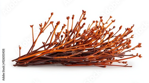Close-up of tumbleweed with intricate branches on white, highly detailed and isolated with soft-edged shadow, ideal for advertising layouts