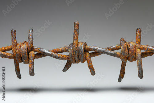 Close-Up of Twisted Barbed Wire Against Clean White Surface