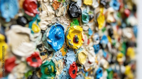 Close-up of vibrant and textured abstract artwork created with thick layers of oil paint