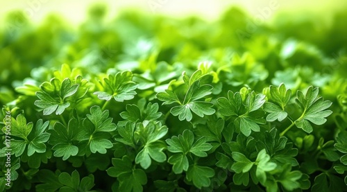 Close-up of vibrant green leaves densely packed under soft natural light creating a fresh and lively atmosphere