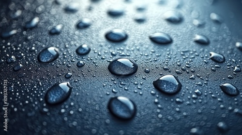 water, droplet, drop, liquid, surface, texture, background, macro, closeup, detail, shiny, wet, moisture, condensation, dark, grey, blue, abstract, design, element, pattern, nature, science, photo, image, photo, illustration, graphic, visual, concept, clean, pure, glossy, smooth, damp, ball-shaped, round, bead, dew, rain, humidity, clear, transparent, still, isolated, object