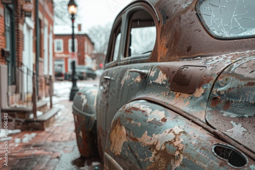 vintage, car, dented, door, old, rust-eaten, weathered, town, vehicle, transport, historical, nostalgia, antique, aged, wear, tear, city landscape, decay, retro, automobile, traditional, streetscape, texture, outdoors, street, old-fashioned, rustic, automotive, past, history, charme, photo, scenic, aesthetic, detail, closeup, neighbourhood